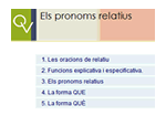 Quadern Virtual adreçat a l'ensenyament-aprenentatge dels pronoms relatius: les oracions de relatiu i les seves funcions, les diferents formes que poden funcionar com a pronom relatiu i en especial les formes QUE i QUÈ